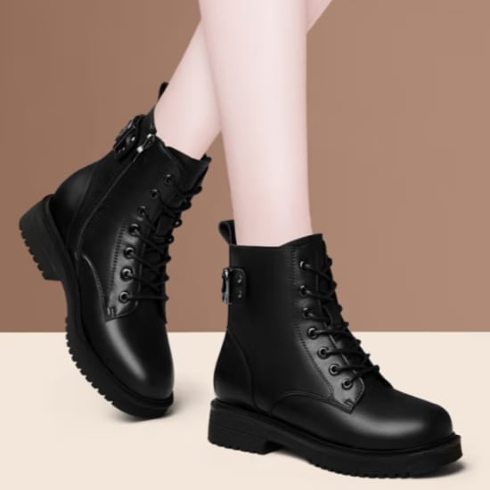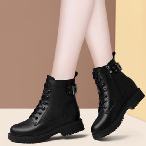 ブーツ レディース シューズ 靴 厚底 ラバー ショートブーツ レザー 大人可愛い カジュアル デート レースアップ ストラップ お出かけ シンプル バックル ブラック 大きいサイズ 厚底 ブーツ