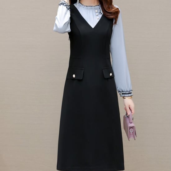ワンピース レディース トップス フレンチガーリー ブラウス オールインワン 大きいサイズ ゆったり 長袖 長袖ワンピース 長袖ワンピ ひざ丈 春 レディース ワンピース 大きいサイズ ゆったり