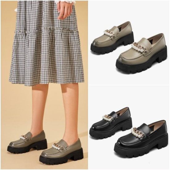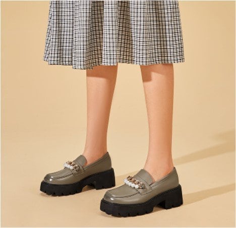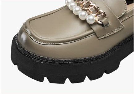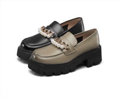 ローファー プレーン パール付き 無地 靴 ラウンドトゥ 厚底 安定感 カジュアル お洒落 こなれ感 レディース 学生 大人 OL 通勤 美脚 春 夏 きれい おでかけ 女子会 デート