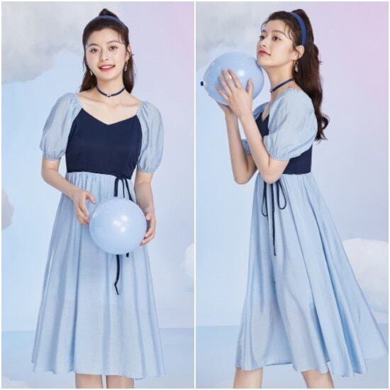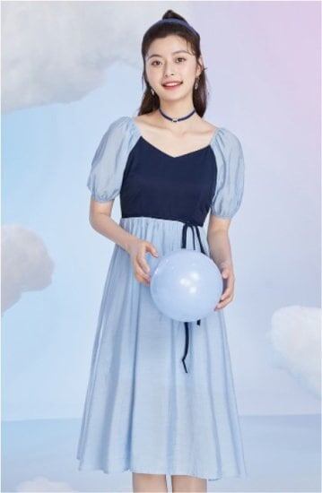 ワンピース ひざ丈 スクエアネック キャンディ袖 フレアワンピ 無地 大人可愛い 透け感 ウエスト切り替え 夏映え ゆるシルエット レディース 女子 夏 夏ワンピ Aライン デート シンプル