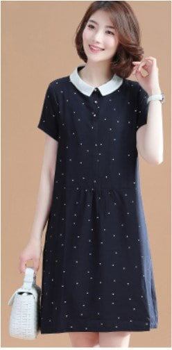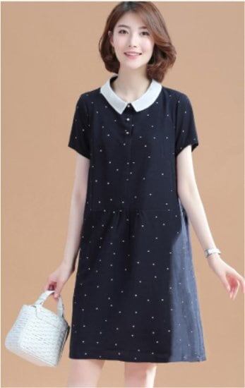 ワンピース Vネック 襟付きワンピース ウエスト切り替え 細身 Aライン 水玉 ドット柄 きれいめ レディース 女子 清楚 春 夏 夏ワンピ お呼ばれ 上品 美人 パーティ かわいい