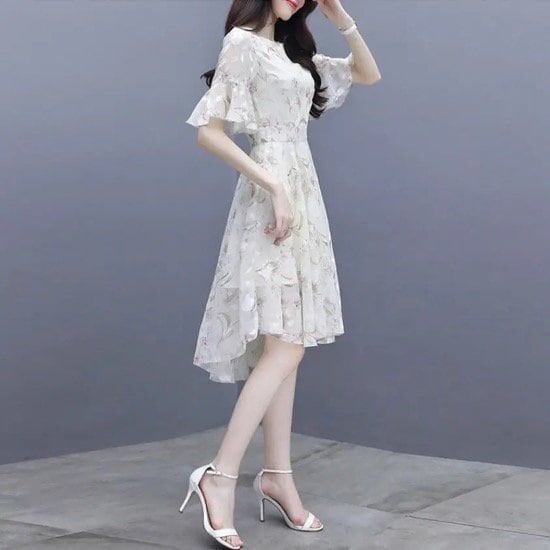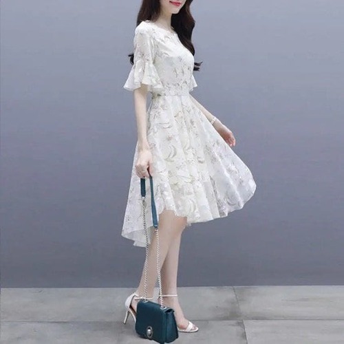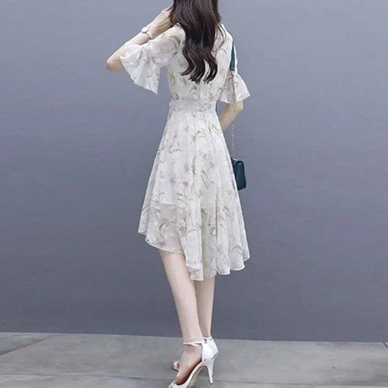 ドレス レディース ファッション お洒落 半袖 シフォン 夏 ふんわり ホワイト 20代 30代 きれいめ 高見え エガント 華奢見え S M L XL 韓国 お呼ばれ パーティー