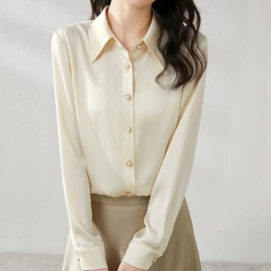シャツ レディース トップス ブラウス 大きいサイズ ゆったり 長袖 春 大人 可愛い サテン サテンシャツ 襟付き ボタン 韓国 きれいめ レディース トップス ブラウス 大きいサイズ ゆったり