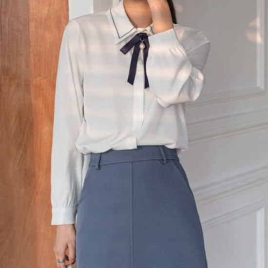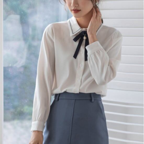シャツ レディース トップス ブラウス 大きいサイズ ゆったり 長袖 きれいめ リボン付き タイ付き 学生 大学生 韓国 春 シャツ レディース トップス ブラウス 大きいサイズ ゆったり 長袖