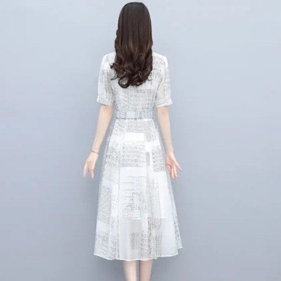 ワンピース ドレス 半袖 夏 春 レディース ファッション お洒落 M L XL Aライン ハイウエスト ベルト ホワイト スリム シルエット きれいめ シック エレガント お出かけ お呼ばれ