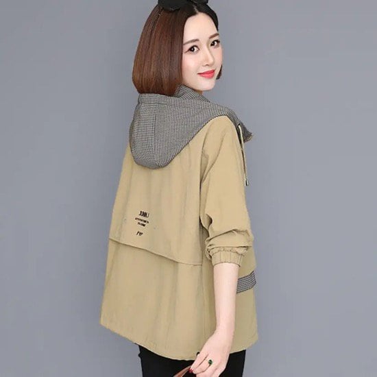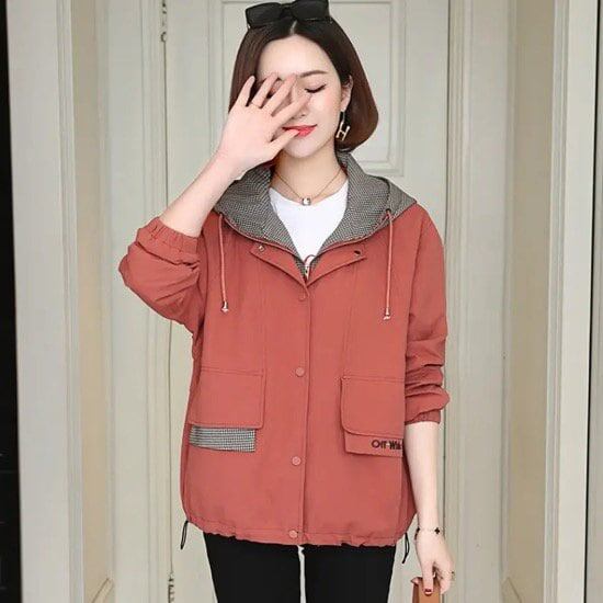 ジャケット ブルゾン レディース ファッション お洒落 春 ショート丈 トレンチ 秋 お出かけ レジャー アウトドア フード 高見え シンプル 重ね着風 グリーン カーキ レッド ジャンパー