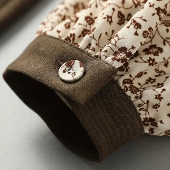 ワンピース 膝丈 レディース ファッション お洒落 春 小花柄 デザイン ドレス ハイウエスト ハイネック ブラウン きれいめ お呼ばれ こなれ感 オシャレ 20代 30代 M L XL 2XL