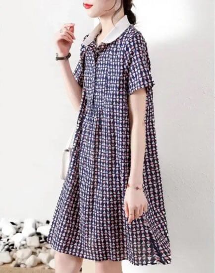 ワンピース 半袖 デザインドレス レディース ファッション 夏 レトロ ヴィンテージ カジュアル オシャレ 丸襟 小花柄 膝丈 体系カバー 華奢見え ハイウエスト Aライン M L XL 2XL