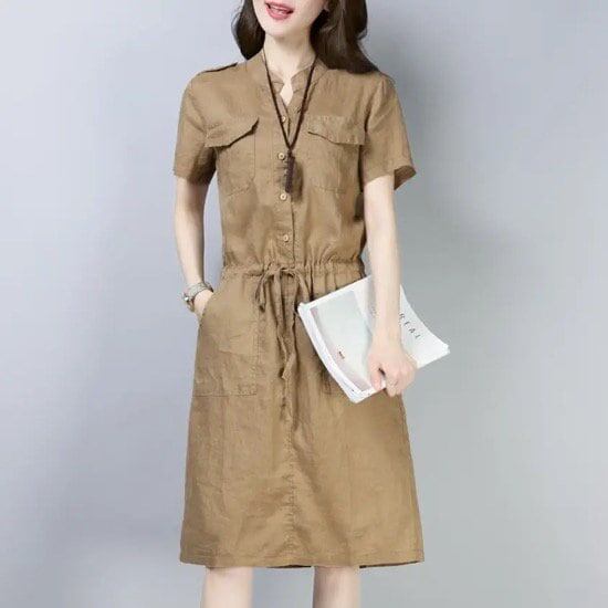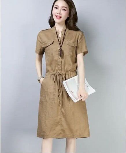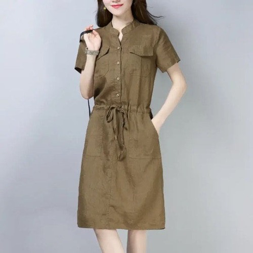 ワンピース 半袖 レディース ファッション 夏 グリーン コーヒーブラウン ネイビー M L XL カジュアル お出かけ 普段着 オシャレ シンプル リラックス 膝丈 レジャー アウトドア 韓国