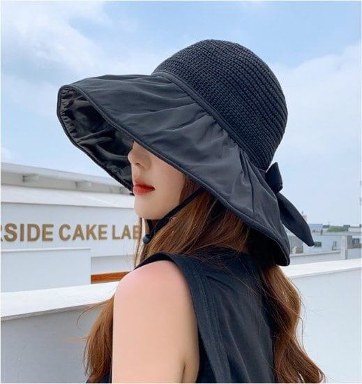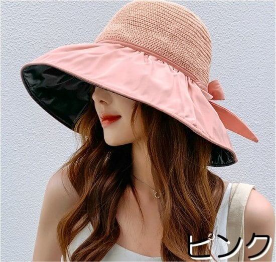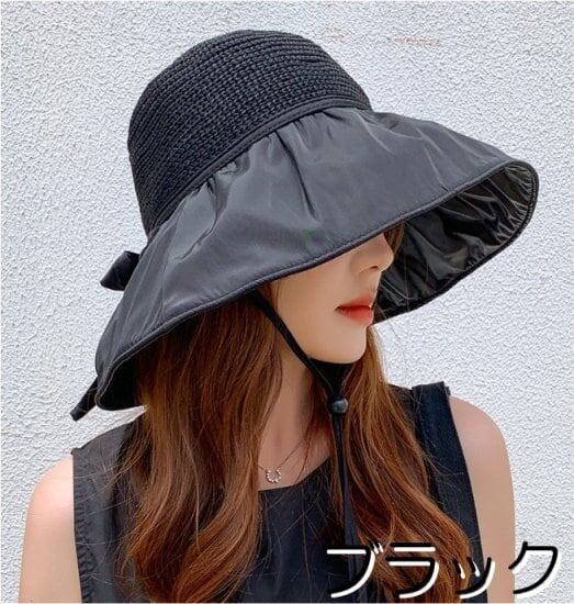 帽子 レディース ハット ひも付き リボン 深め つば広 日よけ 日焼け 夏帽子 春 夏 日焼け ウォーキング 自転車 アウトドア コンパクト 軽い 楽チン 手洗い カジュアル エレガント 女性