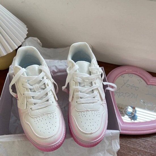 シューズ レディース スニーカー スポーツシューズ ランニング ペインティング グラデーション カジュアル 可愛い かわいい 学生 通学 履きやすい 歩きやすい アウトドア ピンク グレー お洒落
