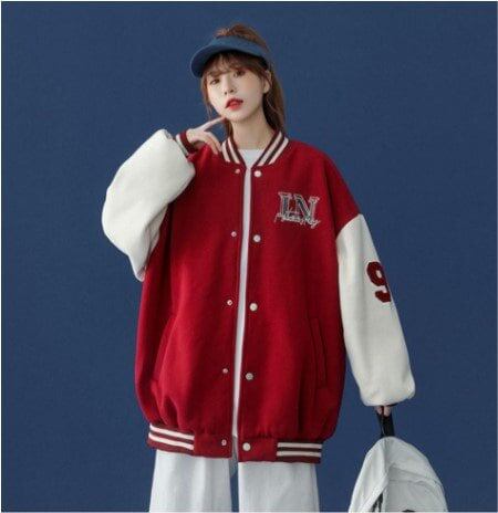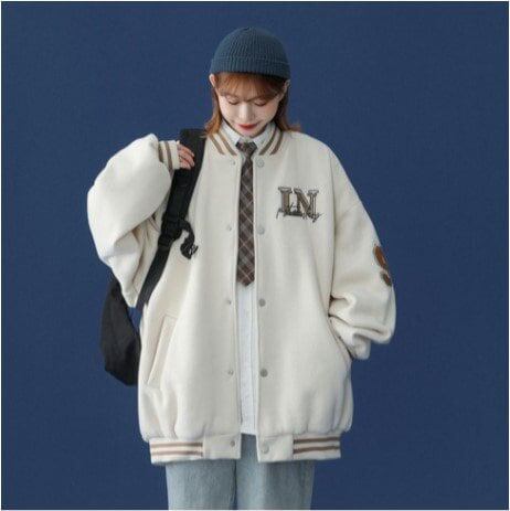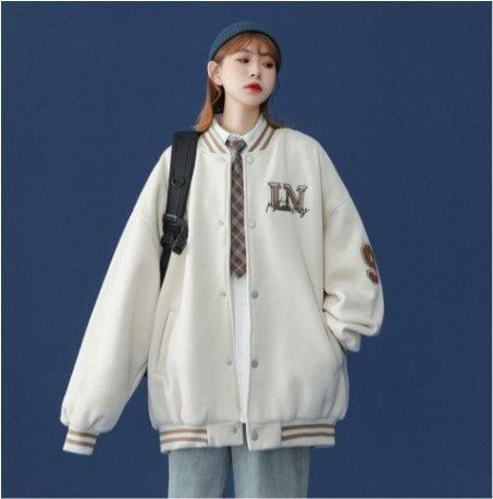 ジャケット レディース長袖 ビックシルエット ブルゾン スタジャン BF風 野球 カジュアル ゆったり アウター ブルゾン 前開きボタン ガーリー デート お出かけ 春 秋 冬 10代 20代