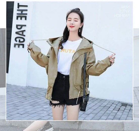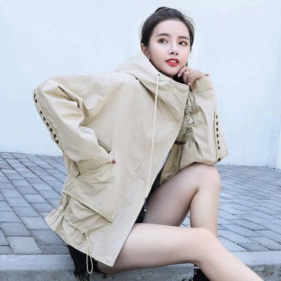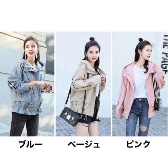 アウター 春 カジュアル ジャンパー レディース ファッション ショート丈 ベージュ レッド ブルー カーキ ピンク アウトドア レジャー お出かけ フード ビックシルエット オシャレ 華奢見え