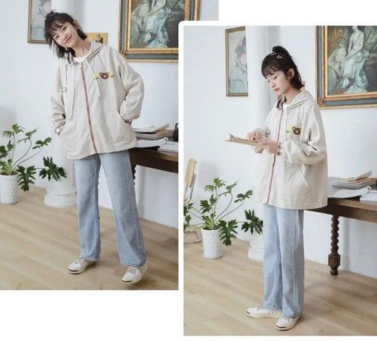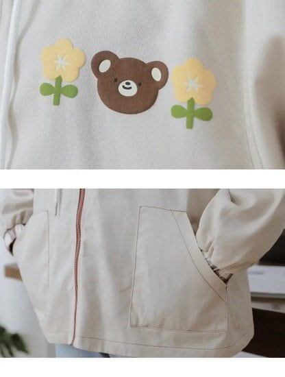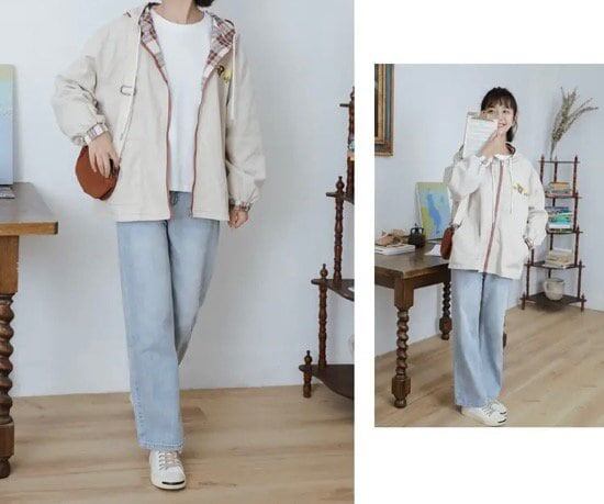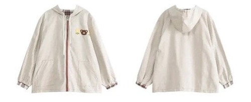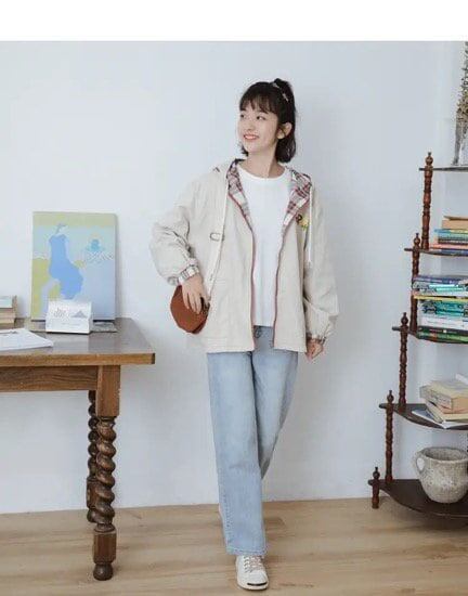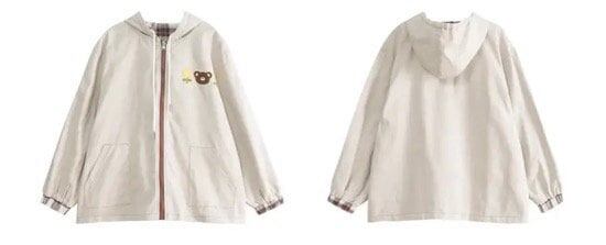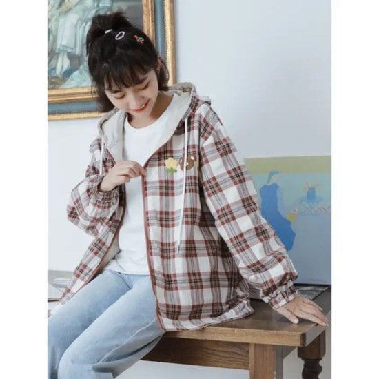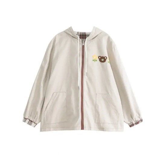ジャンパー ブルゾン 羽織り レディースファッション お洒落 チェック アプリコット リバーシブル ゆめかわ フード カジュアル アニマルクマ 秋 アウター ゆったり 普段着 学生 私服