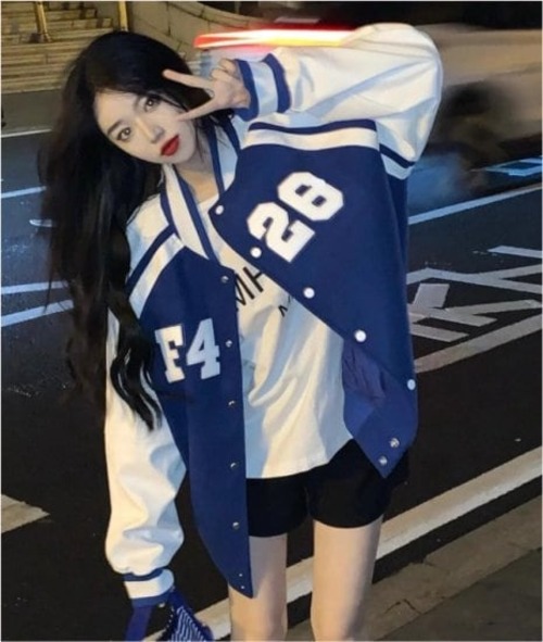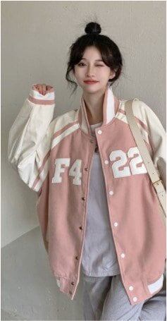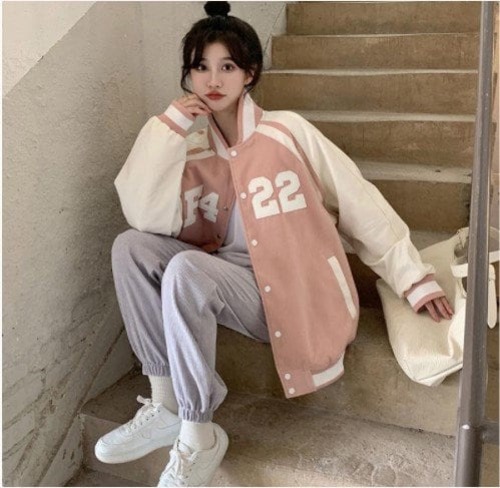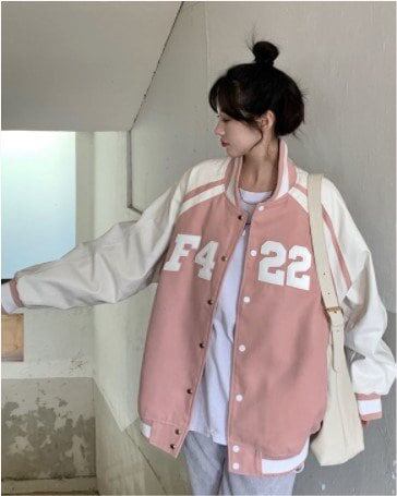 レディースアウタージャンパー バイカラー 野球 ビックシルエット ブルゾン カジュアル ゆったり 体型カバー アウター ナンバー ガーリー デート お出かけ 春 秋 10代 20代 長袖