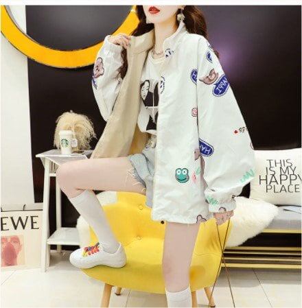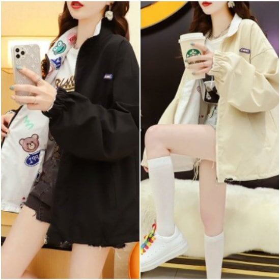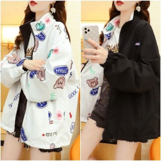 レディースアウター 柄 無地 リバーシブル ビックシルエット ブルゾン BF風 カジュアル ゆったり アウター ブルゾン ガーリー デート お出かけ 春 秋 冬 10代 20代 30代