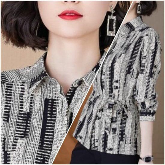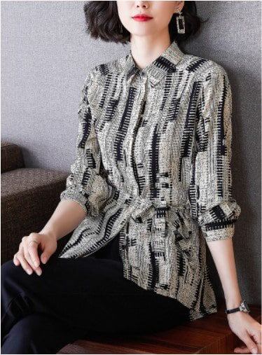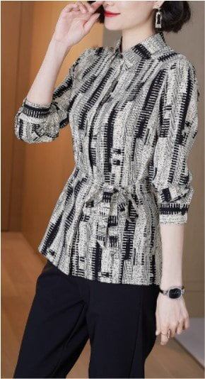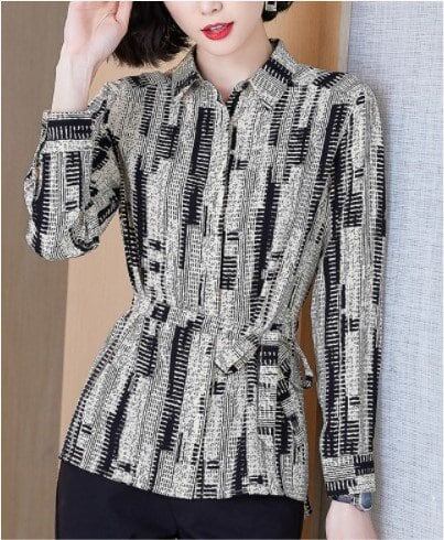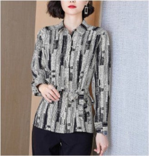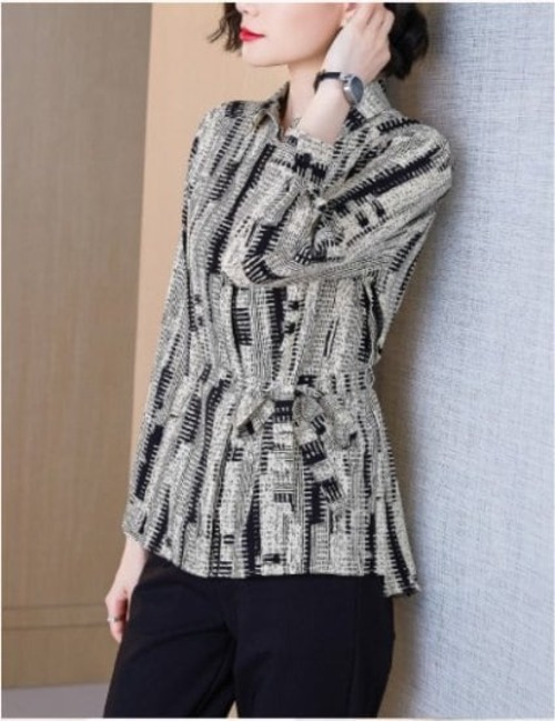 ブラウス レディース ファッション コーデ シャツ シャツジャケット トップス 総柄 羽織り ウエスト ベルト 大人 こなれ感 春 秋 個性的 シンプルデザイン タイト ミドル丈 お出かけ 上品