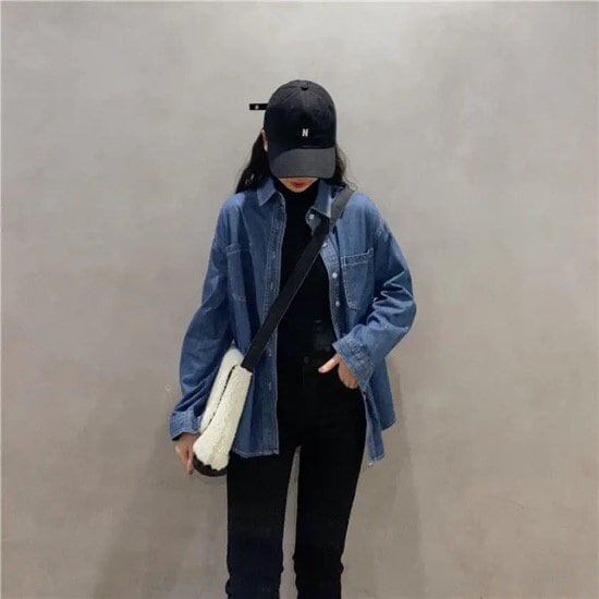 デニムシャツ 長袖 レディース トップス 春 秋 オシャレ 学生 通学 シンプル カジュアル 高見え 華奢見え 羽織り ライトブルー ブルー S M L 綿 カーディガン ビックシルエット