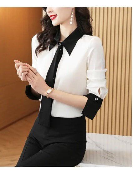 ブラウス シャツ レディース トップス エレガント きれいめ バイカラー 2トーン オシャレ 高見え シック シンプル カジュアル M L XL 2XL 3XL ホワイト ブラック オフィス