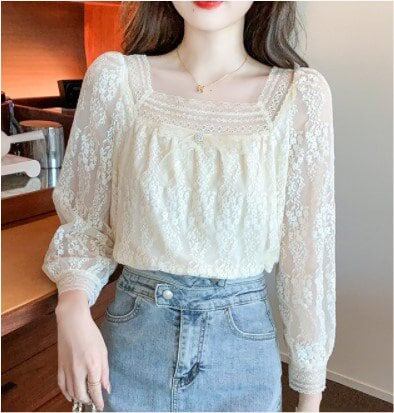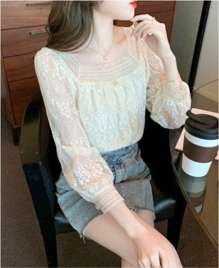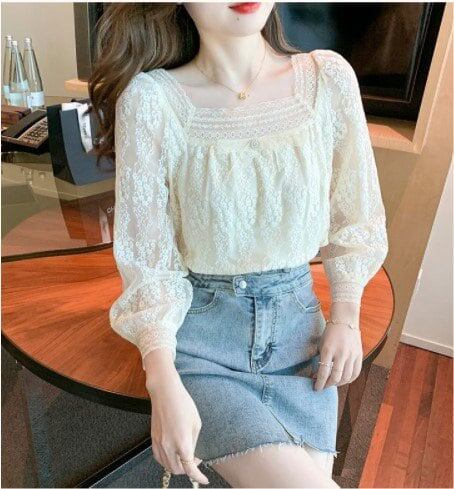 ブラウス トップス レース スクエアカット フレンチ袖 レディース 女性 大人 春 夏 袖フリル総 レース ホワイト 上品 可愛い エレガント オフィス シーン お呼ばれ こなれ感 オシャレ 長袖