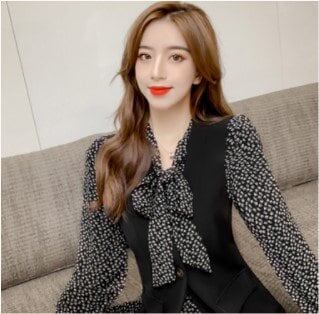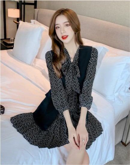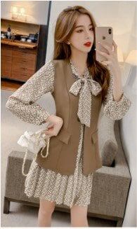 レディス スーツ セットアップスーツ 2点セット ワンピース ベスト 小花柄 コーデ 着痩せ 通勤 オフィス きれいめ ミニ丈 春 夏 可愛い ガーリー レトロ感 結婚式 パーティ お呼ばれ リボン
