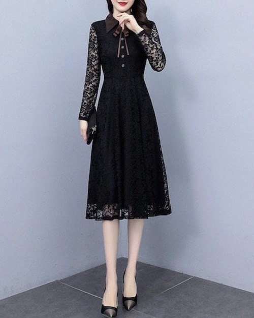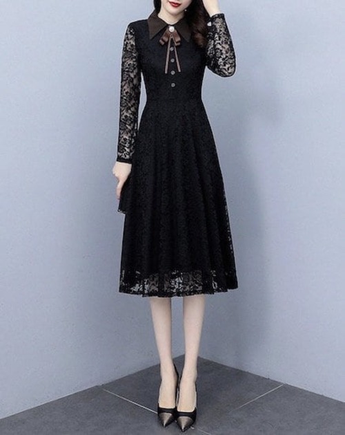 上品な印象の長袖ミドル丈ワンピース。 袖とスカートの裾部分がレースになっていてとってもセクシー! パーティーでも大活躍するアイテムです。 【サイズ】 L、XL、2XL、3XL、4XL、5XL L 着丈:105cm バスト:94cm 肩幅:38cm 袖丈:54.5cm ウエスト:82cm XL 着丈:106cm バスト:98cm 肩幅:39cm 袖丈:55cm ウエスト:86cm 2XL 着丈:107cm バスト:102cm 肩幅:40cm 袖丈:55.5cm ウエスト:90cm 3XL 着丈:108cm バスト:108cm 肩幅:41cm 袖丈:56cm ウエスト:96cm 4XL 着丈:109cm バスト:114cm 肩幅:42cm 袖丈:56.5cm ウエスト:102cm 5XL 着丈:110cm バスト:120cm 肩幅:43cm 袖丈:57cm ウエスト:108cm ※サイズは測り方によって1〜2cmの誤差が生じる場合がございます。 chd-109 ワンピース ミドル丈 レース 長袖 無地 透け感 シンプル ポロカラー リボン ボタン プルオーバー Aライン ハイウエスト 春 秋 レトロ ブラック 20代 30代 レディース お出かけ パーティー こちらの商品は海外からの【お取り寄せ商品】となります。 ご注文確定後(入金確認後)、海外よりお取り寄せさせていただきます。 お届けまで14日〜24日程度お時間をいただいております。 .。o○o。.★.。o○o。.☆.。o○o。.★.。o○o。.☆ shinelivelyへお越しいただきありがとうございます 以下の注意事項をお読みいただき、ご購入をお願い致します。 ※注意事項※ ●トラブル防止の為遠慮なくメールにてご質問・ご連絡下さい。 ●海外からのお取り寄せ商品のため、カラーやイメージが違う、実寸が違う等を気にされる方のクレーム、返品、交換は一切お受けしておりません。そのような方のご購入は予めご遠慮下さい。(初期不良に関しては返品交換の対応をさせていただきます。) ●海外の製品は多少の縫製ミス、糸のほつれ、細かい不具合、多少の色の違い、イメージ違い等がごく稀にございます。検品は徹底しておりますので、ご理解の上ご購入をお願い致します。 ●お届けまで注文確定後14日〜24日となります。 ●ご注文を頂いても海外のメーカーにて完売の場合は、商品をお届けする事ができませんのでキャンセルとさせていただく場合がございます。 ●お客様の個人情報は発送以外に使用することは一切ございません。 ●ご注文確定後のお客様都合によるキャンセル、サイズ・カラーの変更はお受けすることが出来ません。