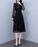 ワンピース ニットドレス レディース ガールズ エレガント 長袖 フリース あったか ミディ丈 秋冬 新作 通勤 キレイ レース ラウンドネック