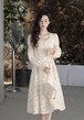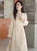 ワンピース ニットドレス レディース ガールズ エレガント 長袖 フリース あったか ミディ丈 秋冬 新作 通勤 キレイ レース ラウンドネック