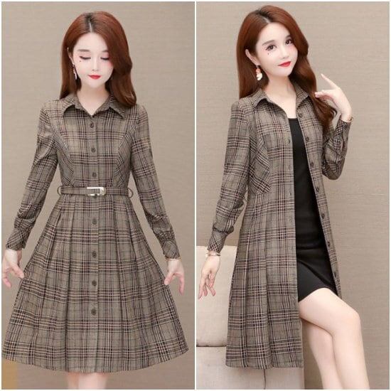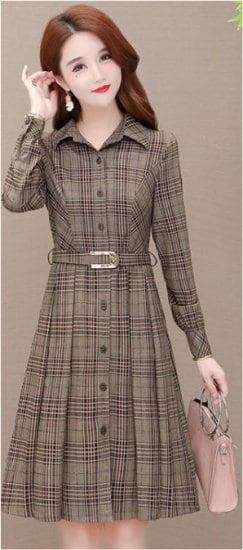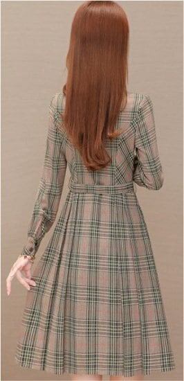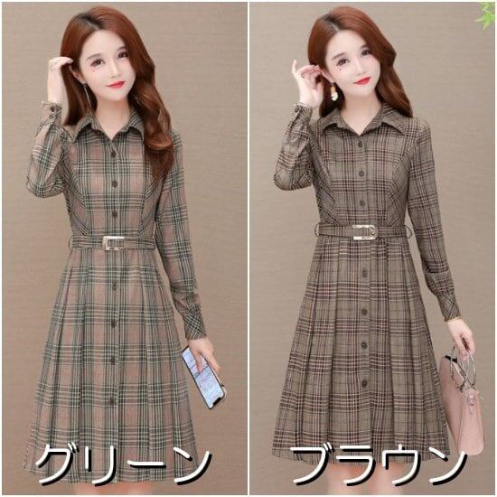 チェックワンピース レディース ワンピース ミドル丈 長袖 Aライン ウエストベルト 細身 スリム コーデ 着痩せ シンプル レトロ感 きれいめ ミニ丈 結婚式 春 夏 大人 抜け感 お呼ばれ