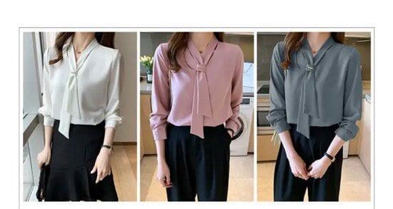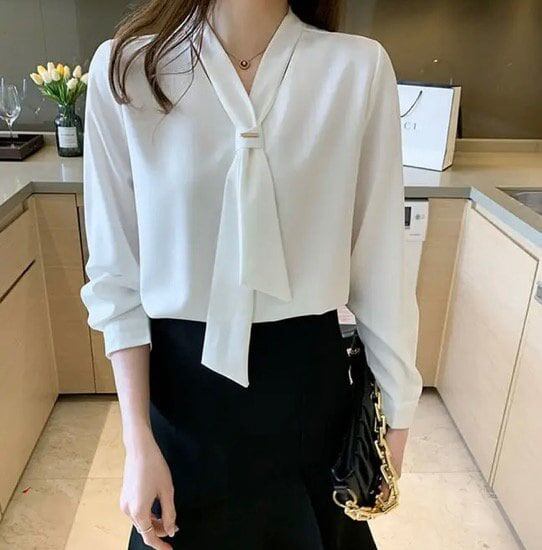 ブラウス レデイース Vネック トップス ファッション 春 長袖 オフィス 通勤 オシャレ 高見え シンプル スカーフ リボン 上品 エレガント S M L XL2XL ホワイト ブルー ピンク