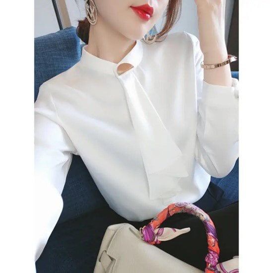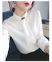 ブラウス レディース ファッション 長袖 ホワイト 秋 ナイロン オシャレ リボン 通勤 オフィス きれいめ S M L XL 上品 エレガント お呼ばれ 前開き シンプル 高見え ブラウス