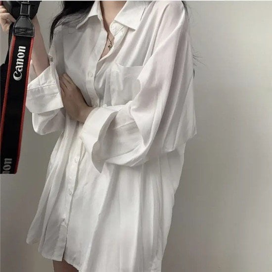 ブラウス シャツ レディース 学生 長袖 ビックシルエット ホワイト ブルー S ボタン 春 秋 トップス ファッション ゆったり 華奢見え オシャレ こなれ感 ルーズファッション 通学