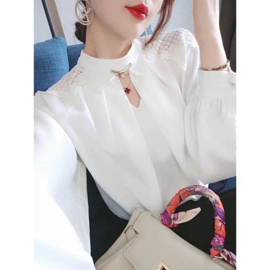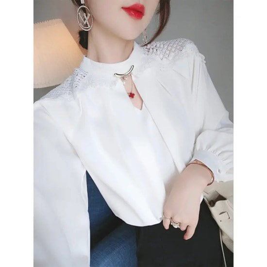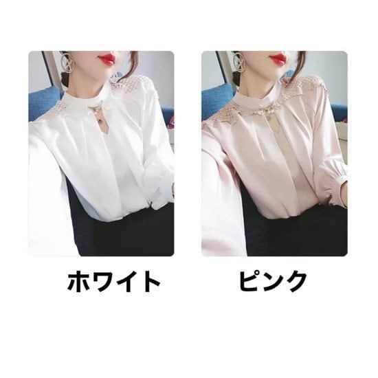 ブラウス レディース 長袖 レース ホワイト ピンク シンプル こなれ感 きれいめ 通勤 お呼ばれ 春 エレガント S M L XL 2XL 20代 30代 シャツ ファッション