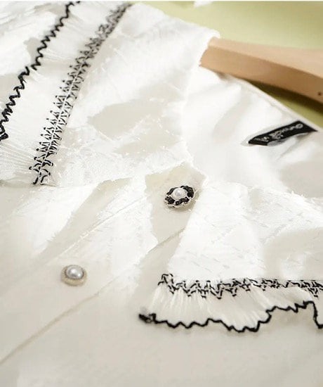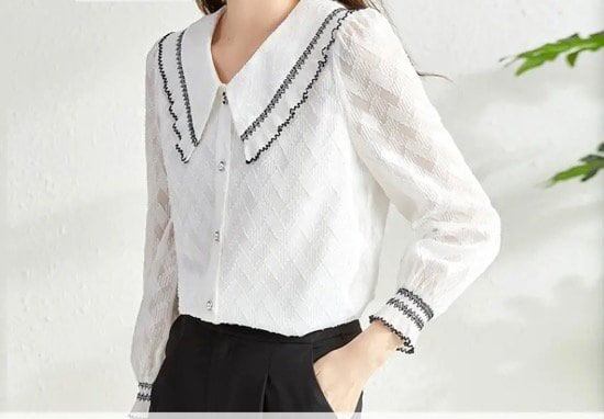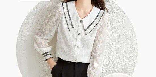 ブラウス レディース シャツ ホワイト S M L XL ビック襟 ボタン オシャレ シフォン エレガント 通勤 オフィス きれいめ こなれ感 透け感 春 ジャガード シフォン トップス