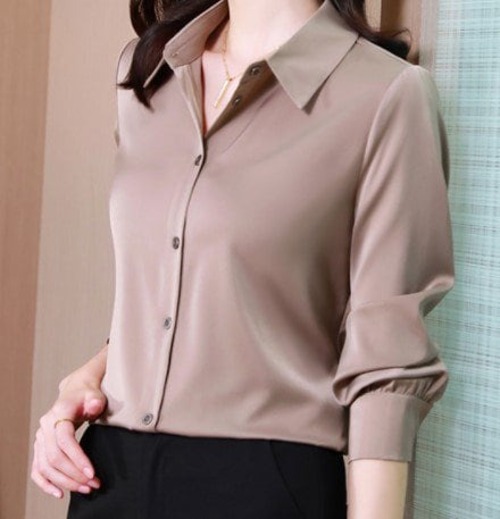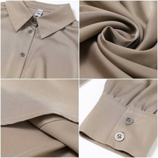 ブラウス 光沢 とろみ 襟付きブラウス オシャレ シンプル 大人きれいめ フェミニン スタイリング こなれ感 お呼ばれ 発表会 上品 すっきり Vネック 気映え 春 夏 秋 かっこいい フォーマル