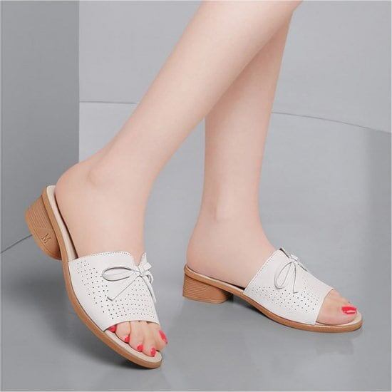 サンダル レディース つっかけ オープントゥ リボン ローヒール 太ヒール 無地 サンダル 大人可愛い こなれ感 きれいめ 普段使い 歩きやすい 履きやすい 牛皮 4cm