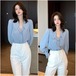 ブラウス オフィス Vネックブラウス オシャレ シンプル 大人きれいめ フェミニン こなれ感 お呼ばれ 上品 すっきり Vネック 気映え 春 夏 清潔感 シフォン フォーマル 袖プリーツ とろみシャツ