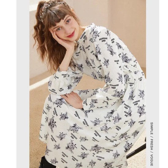 長袖ワンピース ミドル丈ワンピース プリントワンピース ロングワンピース フレンチ レトロワンピ デザインワンピ ナチュラル クラシカル レディース 10代 20代 ロングスカート フレグランス