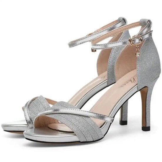 サンダル オープントゥ アンクルストラップ ハイヒール セクシー 美脚 脚長効果 ラメ ストラップ エレガント パーティー 小さい サイズ 大きい サイズ オシャレ 夏 お呼ばれ ヒール 8㎝