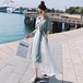 ワンピース ロング 半袖 ロングワンピース シフォンワンピース レディース 大人可愛い 大きいサイズ Aライン ワンピース ウォーターグリーン ワンピース ロング 半袖 ロングワンピース