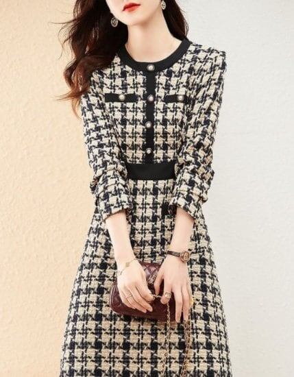 ツイード ワンピース きれいめ 大人 ウエスト切り替え フォーマル Aライン 秋 冬 長袖 パーティー 30代 40代 ひざ丈 レディース切り替え お呼ばれ 上品 おしゃれ S M L XL