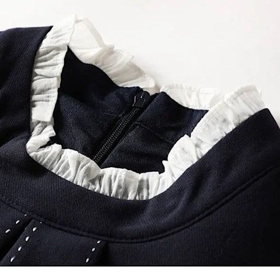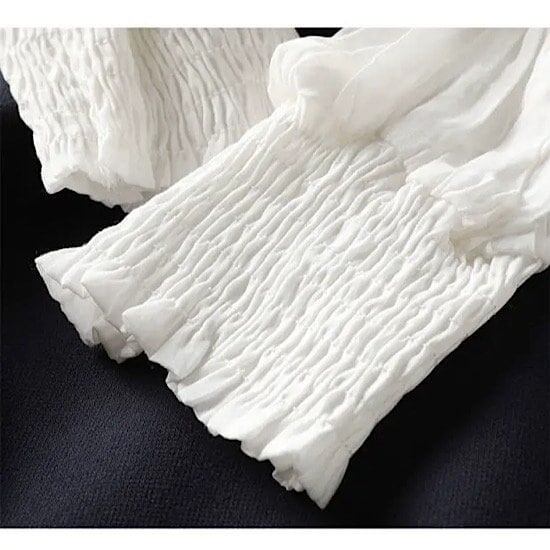 ワンピース 長袖 膝上 清楚 透け感 ガーリー フリル リボン Aライン 体型カバー 大きいサイズ ハイウエスト オフィス お洒落 ガーリー レディース ファッション ワンピース 高見え 長袖