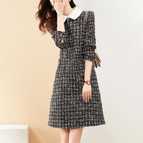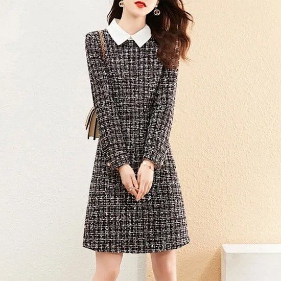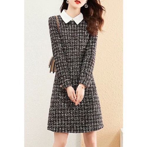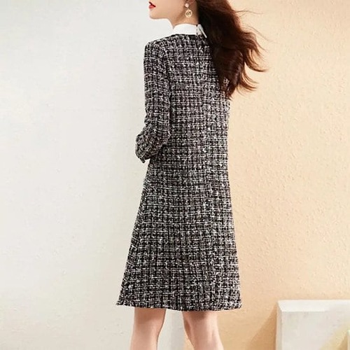 ワンピース 膝上 長袖 オフィス デート 秋 冬 襟付き 大きいサイズ 体型カバー 脚長効果 ワンピース 通勤着 こなれ感 きれいめ お洒落 ワンピース オフィス ワンピース 膝上 体型カバー