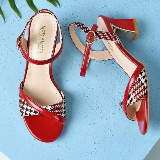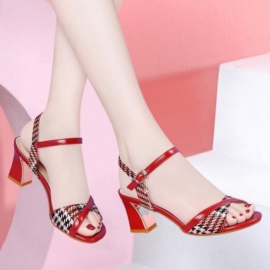 サンダル レディース パンプス アンクルストラップ バックバンド オープントゥ ローヒール 太ヒール チェック サンダル 大人可愛い こなれ感 きれいめ 普段使い 通勤 5.5cm