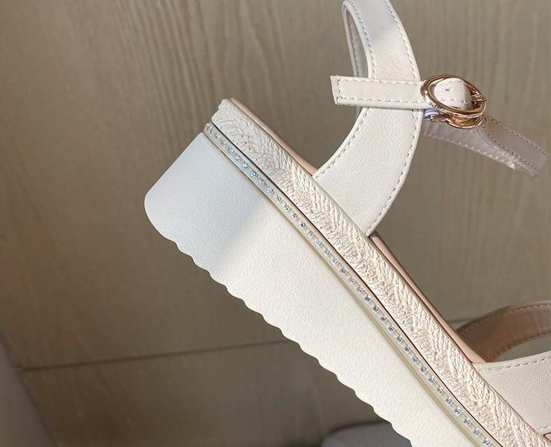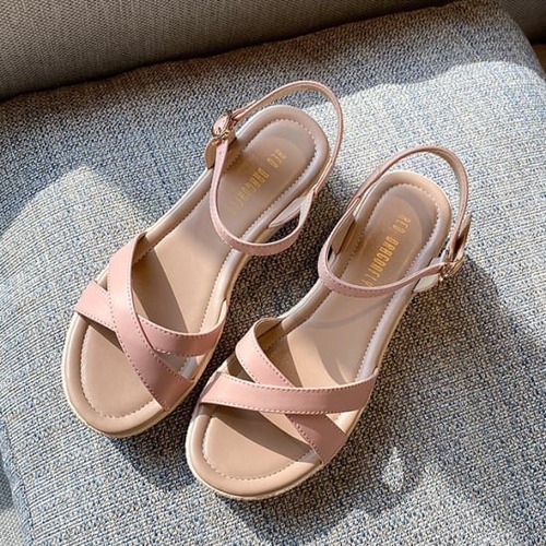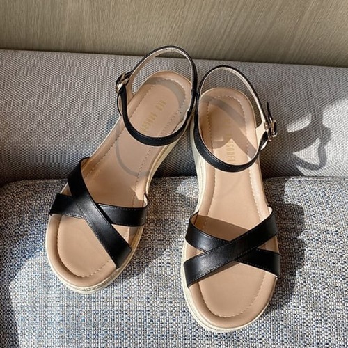 サンダル レディース アンクルストラップ バックバンド オープントゥ ウェッジソール 無地 大人可愛い こなれ感 きれいめ リゾート アウトドア 普段使い ヒール 5cm 牛皮