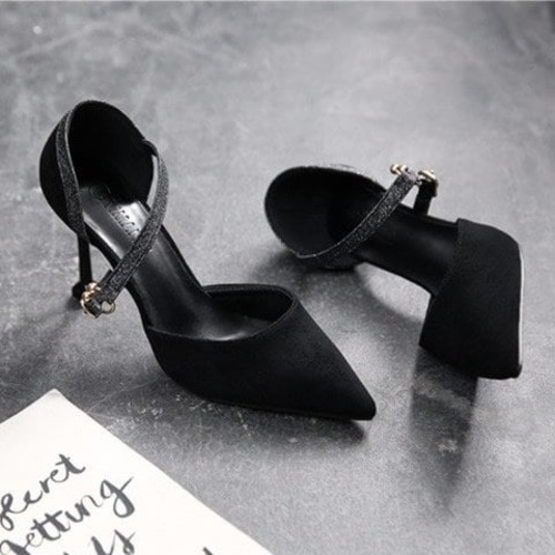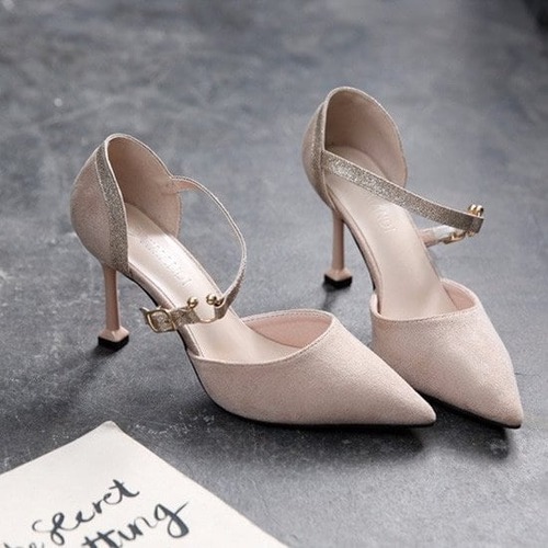 パンプス レディース ハイヒール ピンヒール アンクルストラップ ポンテッドトゥ スエード 大人可愛い フォーマル セクシー きれいめ パーティー デート 結婚式 5cm 7cm