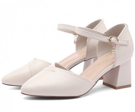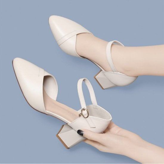 パンプス レディース アンクルストラップ バックベルト ポンテッドトゥ ローヒール 太ヒール 牛皮 大人可愛い エレガント フォーマル 結婚式 パーティー 6.5cm