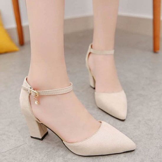 パンプス レディース アンクルストラップ バックベルト ポンテッドトゥ ローヒール 太ヒール PU キラキラ 大人可愛い エレガント フォーマル 結婚式 パーティー 7cm