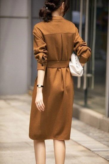 ワンピース 2WAY コート ブラウン ベルト 秋 冬 あったか レディース 大きいサイズ シンプル 大人可愛い ウエストマーク 細見え 韓国風 オルちゃん 通勤 通学 上品 人気 トレンド 着痩せ