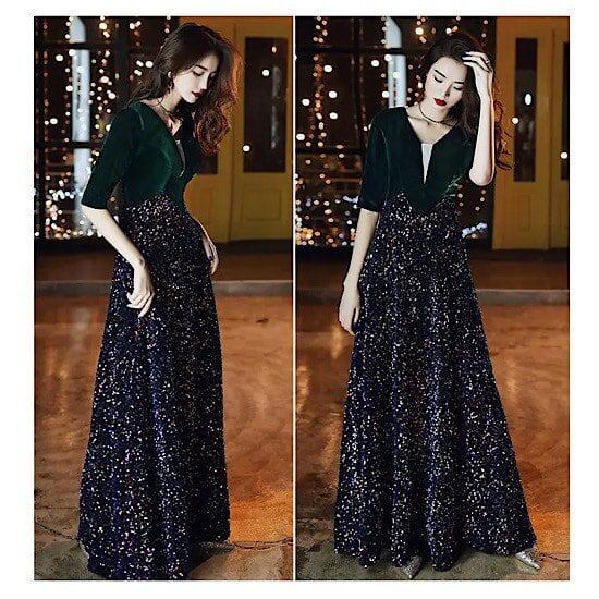 切替ワンピース ワンピースドレス パーティドレス イブニングドレス ロングワンピース ロングドレス ロングスカート スパンコール 切替 おしゃれ きれいめ クール 個性的 パーティドレス